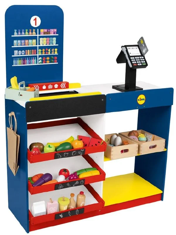 Por medio de esta tienda, Lidl permite que los pequeños se sientan auténticos trabajadores de esta cadena, dando lugar así a experiencias sumamente divertidas y educativas desde casa. Gracias a que la estructura de este producto cuenta con detalles que imitan a la perfección el funcionamiento real del supermercado, los niños tienen la posibilidad de realizar labores como la organización de artículos en estanterías, el escaneo de artículos y el empleo de una caja registradora a manera de calculadora.