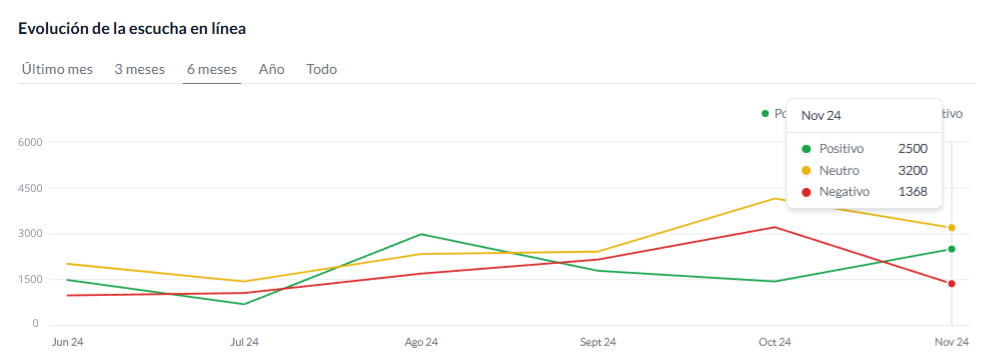 ● Escucha en línea: Análisis en tiempo real de conversaciones y menciones en redes sociales para comprender la percepción de la marca en cada momento.