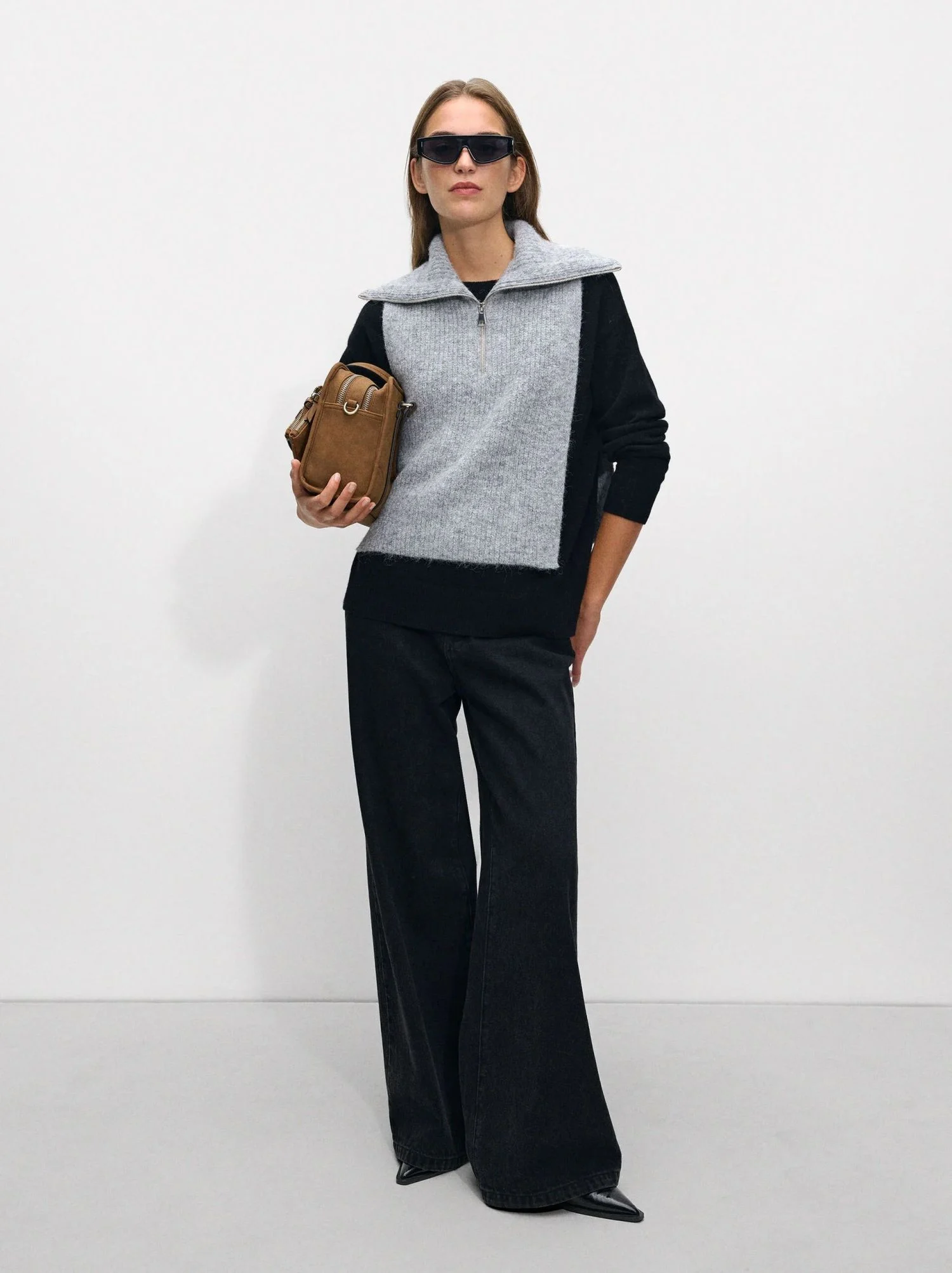 Este chaleco abierto es la pieza ideal para añadir estilo y confort a tus looks de otoño e invierno. Confeccionado con una mezcla de 70% poliéster, 21% poliamida, 8% lana y 1% elastano, ofrece una textura suave y un ajuste flexible. Su diseño abierto a los lados proporciona una gran libertad de movimiento, mientras que el cuello alto con cierre de cremallera asegura una protección adicional contra el frío.