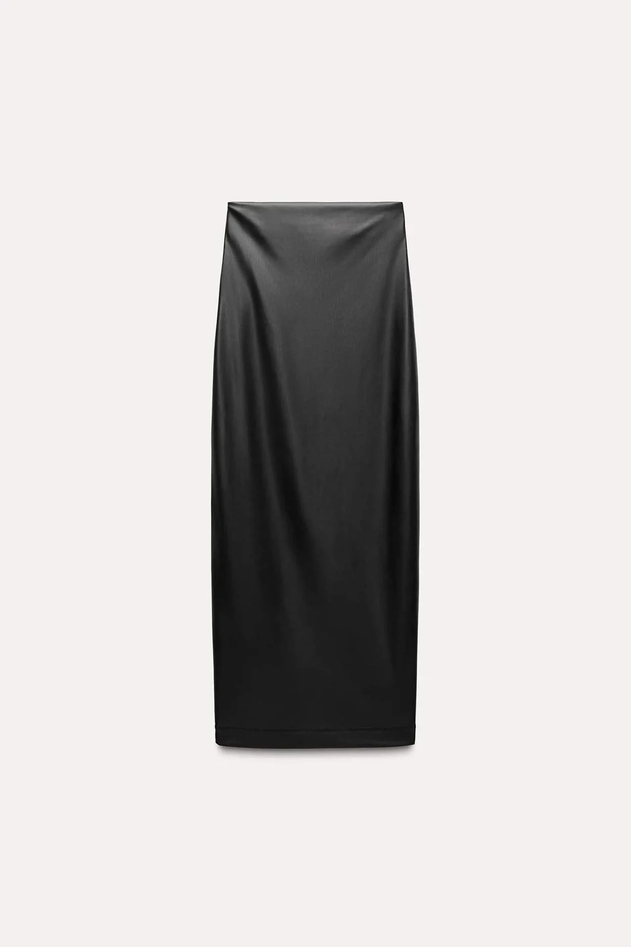 Por otra parte, nos encontramos ante uno de los tejidos más empleados y vistos durante este otoño-invierno. Se trata de una falda midi con efecto piel y silueta tubo que, de la mano con tus jerséis gruesos y calentitos de confianza, te ayudará a crear outfits ideales para cada ocasión que imagines. Es tuya por 39,95€ y la puedes comprar en Zara (referencia 9341/910).