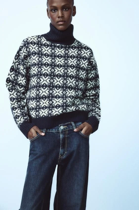 Este jersey de punto jacquard de Zara es la opción perfecta para quienes buscan una prenda con un toque de estilo y sofisticación. Con su cuello subido y manga larga, te mantendrá abrigada mientras te ofrece un ajuste cómodo gracias a sus acabados en rib en el cuello, los puños y el bajo. El diseño de punto jacquard añade un sutil patrón que eleva la prenda, haciéndola ideal tanto para el día a día como para ocasiones más especiales.