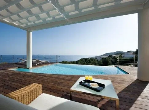 El chalet más caro en venta de Ibiza, Villa Diosa, alcanza los 35 millones de euros. El chalet, dice el anuncio, es «el epítome del lujo y la serenidad», está envuelta por 160.000 m² de terreno virgen, cuenta con un amplio espacio habitable de 696,2 m2 dividido en 3 edificios, y dispone de 2 piscinas de 99,58 m2.