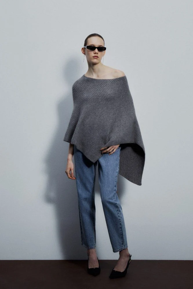 La capa asimétrica de punto con cuello caja es una opción elegante y práctica para los días más frescos. Con su diseño único y asimétrico, aporta un toque moderno y sofisticado a tu vestuario, mientras que el cuello caja agrega un extra de confort. Esta capa es perfecta para aquellos días en los que buscas un estilo relajado pero lleno de personalidad. Además, su tejido de punto la hace suave y cómoda, ideal para combinar con distintos looks.