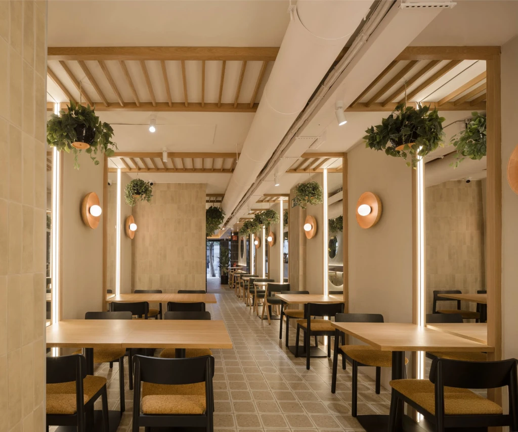 El diseño y la atmósfera de esta pastelería «fit», sin duda, componentes clave de su éxito. Al cruzar la puerta, los clientes se encuentran en un espacio moderno y acogedor que invita a relajarse. La decoración cuidadosamente elegida, que mezcla elementos industriales con toques más cálidos, crea un ambiente perfecto tanto para disfrutar de una charla con amigos como para trabajar en un proyecto personal.