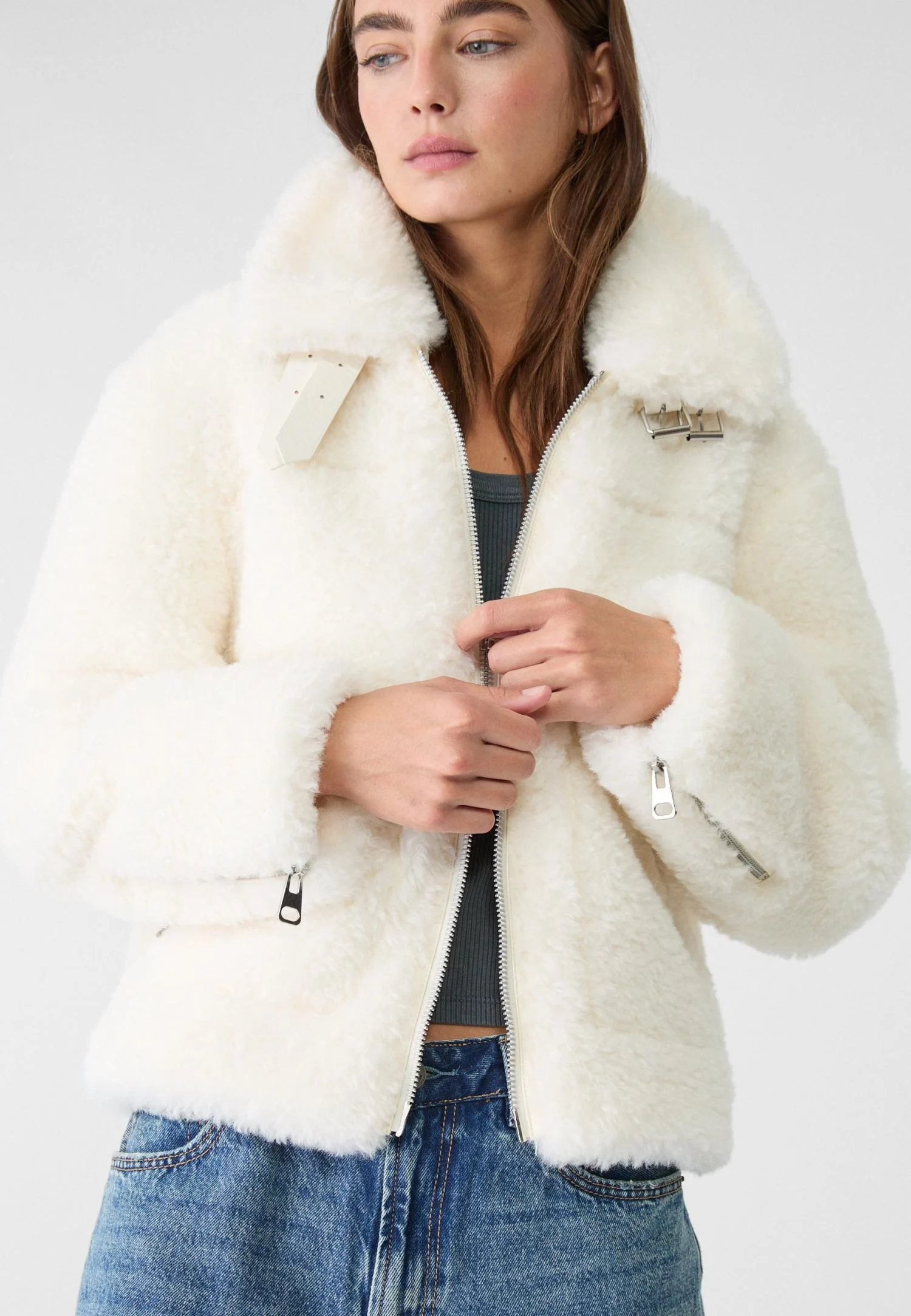 La cazadora aviador efecto borreguillo de Stradivarius es el perfecto equilibrio entre estilo y funcionalidad. Por 59,99 €, esta prenda ofrece un diseño sofisticado que evoca las clásicas chaquetas aviador, pero con un toque moderno gracias al tejido de efecto borreguillo. El resultado es una chaqueta que combina calidez, comodidad y una apariencia de lujo a un precio accesible.