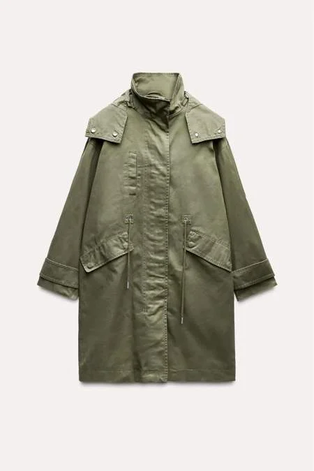 Si eres de las que prefieren los tejidos naturales, esta parka es ideal para ti. Esta confeccionada con hilatura de algodón 100 % y su diseño incluye pliegues ajustables en las mangas, cintura ajustable con cordones y cuello alto con capucha. Es perfecta para llevarla puesta cuando el objetivo principal es dar lugar a un look casual y, sobre todo, cómodo. Cuesta 79,95€ y está disponible en Zara (referencia 4088/240).