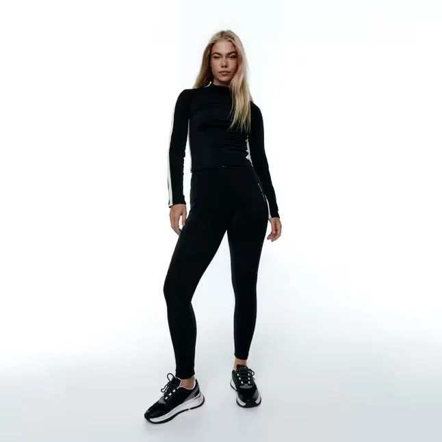 El legging térmico de alto impacto complementa perfectamente el conjunto, proporcionando una excelente sujeción en la zona de la cintura, así como una longitud ideal y bolsillos laterales con cremallera para mayor comodidad y practicidad. Ideal para actividades al aire libre o sesiones intensas en el gimnasio, este conjunto está pensado para mantener tu cuerpo bien abrigado sin perder libertad de movimiento, gracias a la calidad de sus materiales térmicos.
