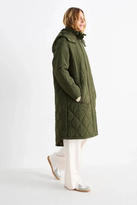 El Abrigo Acolchado con Capucha de C&A es la opción ideal para quienes buscan enfrentar el invierno con estilo y practicidad. Su diseño en tonos clásicos como verde oscuro y azul oscuro lo convierte en una pieza versátil para cualquier guardarropa. Fabricado con un acolchado ligero y un tejido liso, este abrigo es perfecto para mantenerte abrigada sin sentirte pesada.