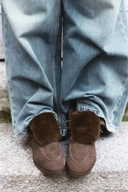 4Botín plano efecto pelo