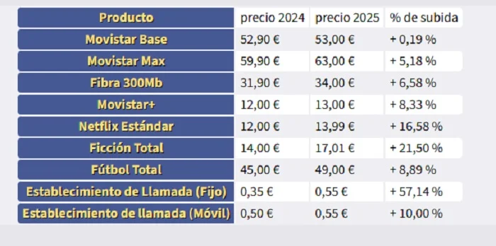 Las subidas se aplican a todos los productos, desde la fibra hasta las cada vez menos utilizadas llamadas de fijo a móvil, y se van conociendo a medida que los usuarios reciben la comunicación personalizada en función del pack o servicio que tiene contratado, con lo cual se pueden sumar euros de subida en diferentes servicios, según la contratación personal de cada cual.