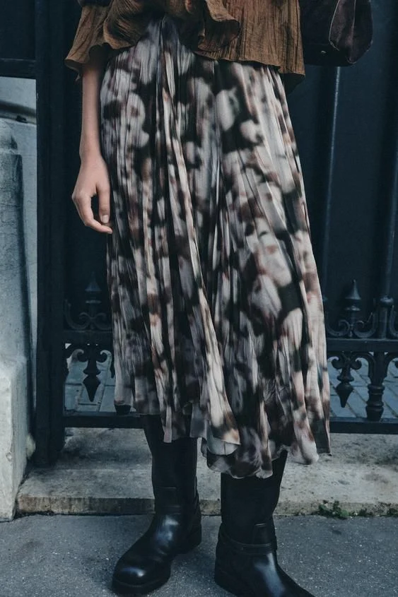 El bajo asimétrico de la falda midi de Zara le otorga un toque moderno y fresco, creando una silueta estilizada que se adapta perfectamente a diferentes tipos de cuerpo. El cierre con cremallera oculta en la costura aporta un acabado limpio y elegante, mientras que el detalle de las tablas ofrece movimiento y fluidez, convirtiéndola en una prenda que se siente tan cómoda como sofisticada. Su diseño versátil la hace ideal tanto para el día a día como para ocasiones más especiales.
