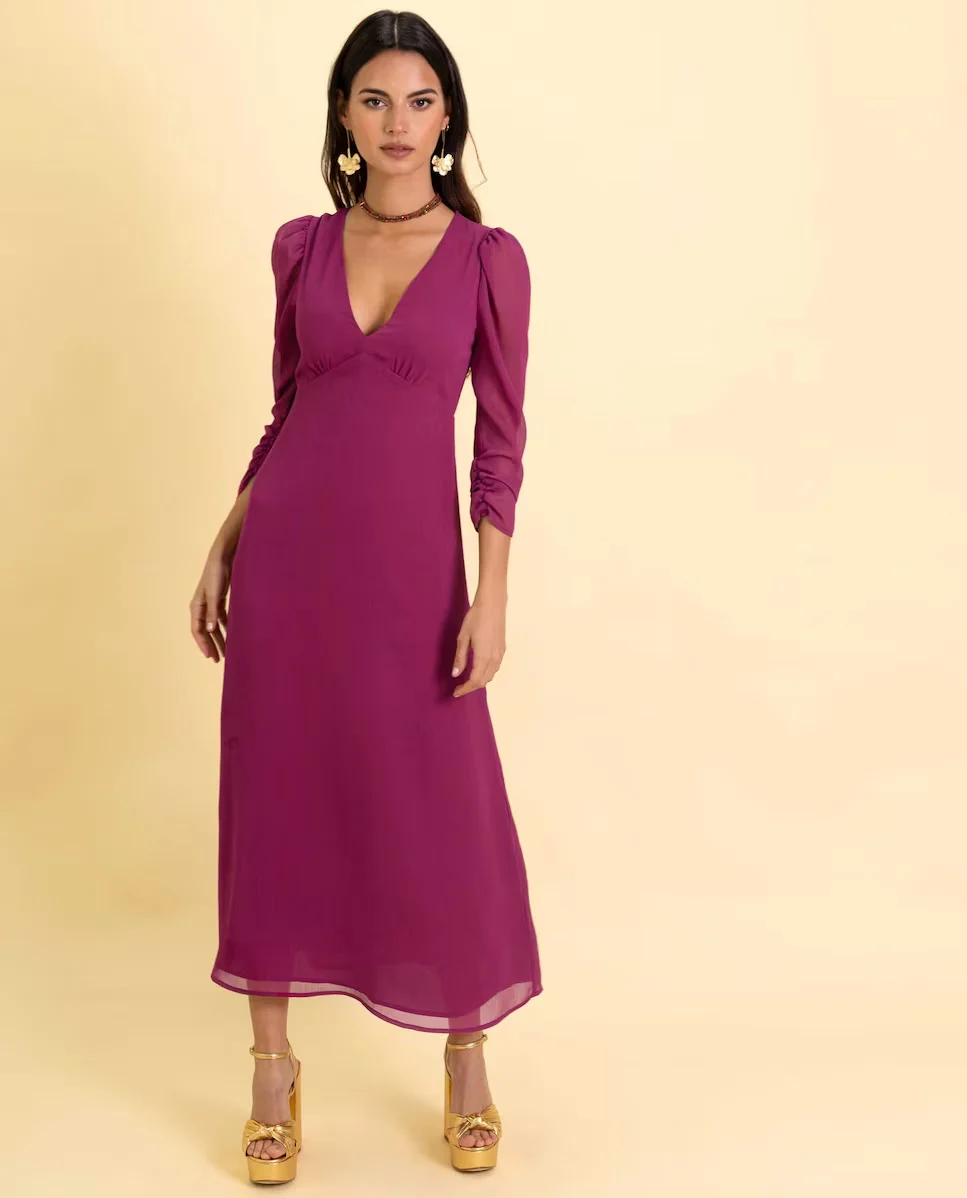 Empezamos con una opción perfecta para quienes buscan un estilo juvenil y elegante al mismo tiempo. Se trata de este vestido con mangas abullonadas, el cual resulta ideal para utilizar en eventos en los que solo sea necesario llevar una estola o un abrigo tres cuartos. Actualmente lo puedes conseguir en El Corte Inglés por 134€.