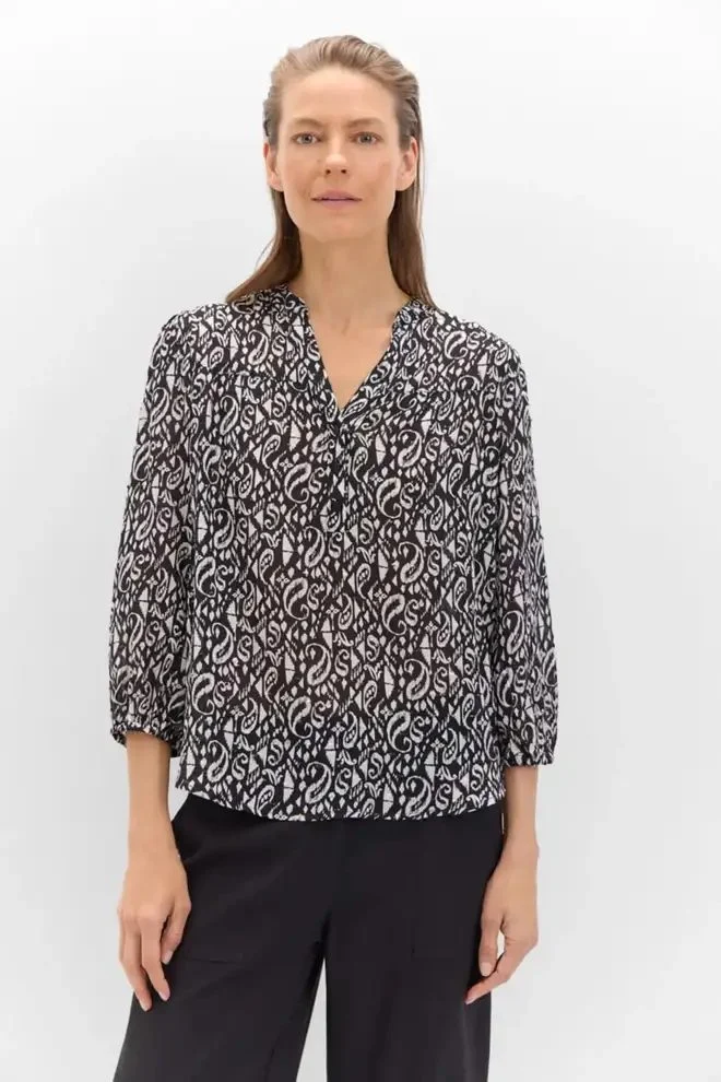 Damos inicio a este listado con un tejido sumamente elegante y ligero de viscosa pensado para llevar principalmente en entretiempo. Cuenta con cuello mao a manera de detalle que otorga originalidad, y con botones hasta la abertura en la parte frontal. Es ideal para llevar en looks de oficina con tus vaqueros de confianza o con pantalones de vestir, para dar lugar a un estilismo cómodo y sofisticado sin esfuerzo alguno. Actualmente está disponible en Cortefiel por 19,99€ (antes 39,99€).