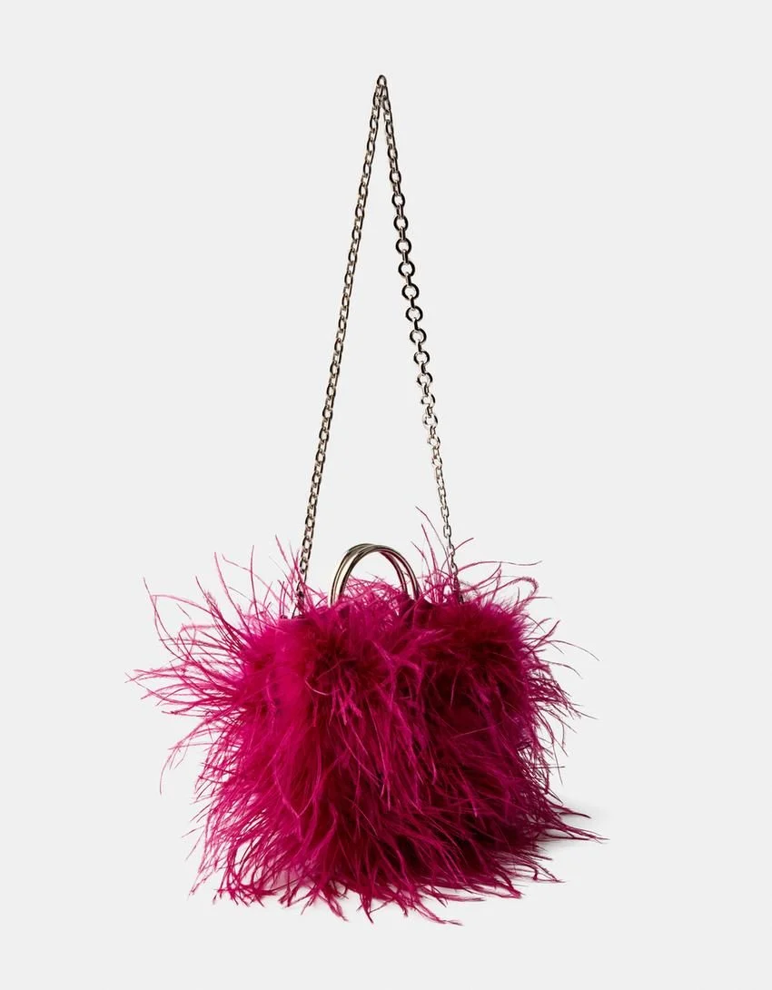 Si buscas un bolso que combine funcionalidad con una estética atrevida, el bolso clutch pluma de Bershka es la opción perfecta. Con su diseño único y el toque de color fucsia , es un accesorio que le dará a tus outfits un giro moderno y fresco.
