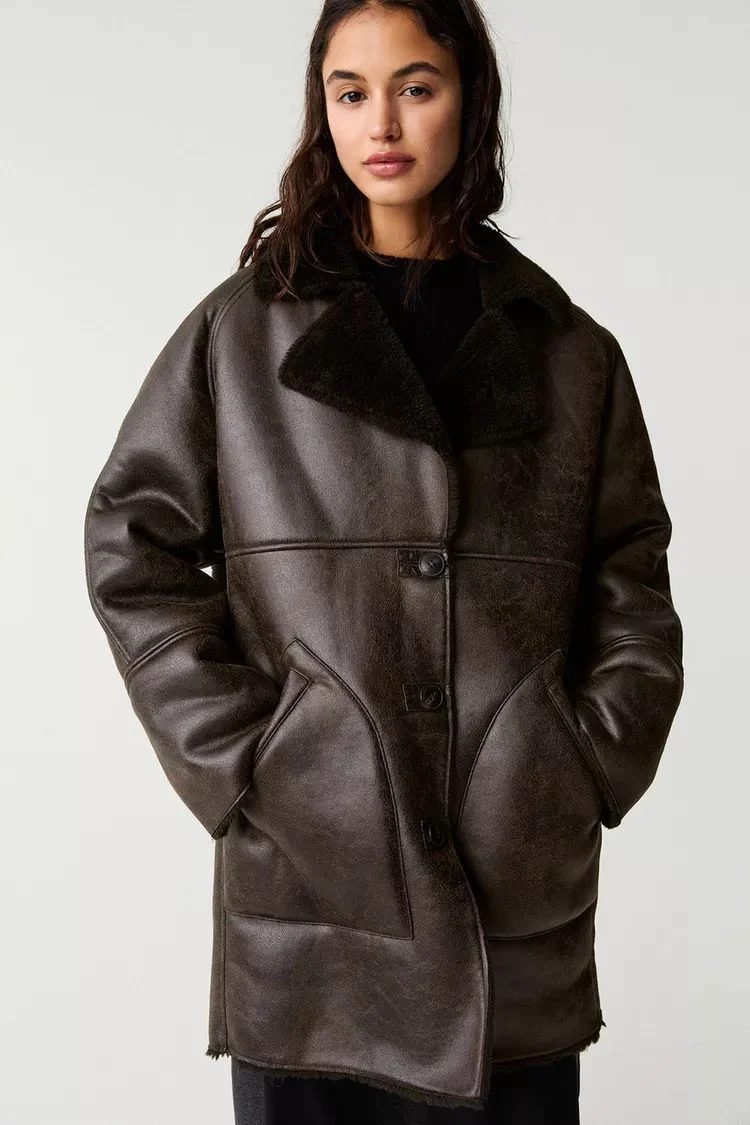 Si buscas una prenda que te proporcione estilo, comodidad y protección contra el frío, el abrigo doble faz efecto piel de Pull&Bear es una opción imprescindible. Con su mezcla de texturas y detalles cuidados, es el abrigo ideal para completar tus looks invernales con un toque de lujo y calidez.