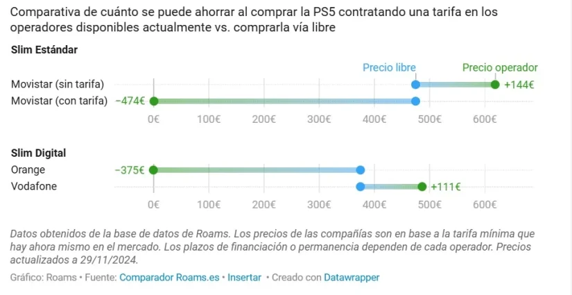 «Esto hace un total de 300 euros que se pagan por el dispositivo, un 62,5% menos de lo que cuesta en la PS Store y cualquier gran superficie. Si se quiere adquirir la última consola de Sony, «desde luego no hay oferta mejor en el mercado, pero ni ahora ni en los últimos 10 años: tu mejor opción es adquirirla con Orange», según los investigadores de Roams.