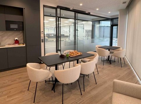 Áreas de descanso y bienestar: Espacios diseñados para la desconexión, que incluyen una cocina completamente equipada donde los empleados pueden relajarse y recargar energías.