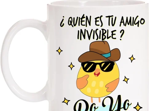 Para empezar con todos estos regalos para el amigo invisible, tenemos en Amazon esta taza que se llama «Quiés es tu amigo invisible? Po’yo», una graciosa muestra para obsequiar en esta ocasión.