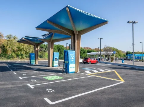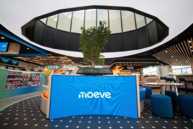 La estación de servicio en Campo de las Naciones (Madrid) de Moeve será el espacio de referencia de toda la red de 1800 estaciones en España y Portugal. La estación cuenta con 6 puntos de carga ultrarrápidos de 350kW, alimentados con energía 100% renovable suministrada por Moeve, a los que se sumarán otras 6 plazas más en los próximos meses, 20 surtidores de combustibles tradicionales, todos ellos con pago digitalizado en el mismo surtidor y preparados para el suministro de diésel renovable (HVO100), y 6 puntos de suministro de gas (GLP y GNC).