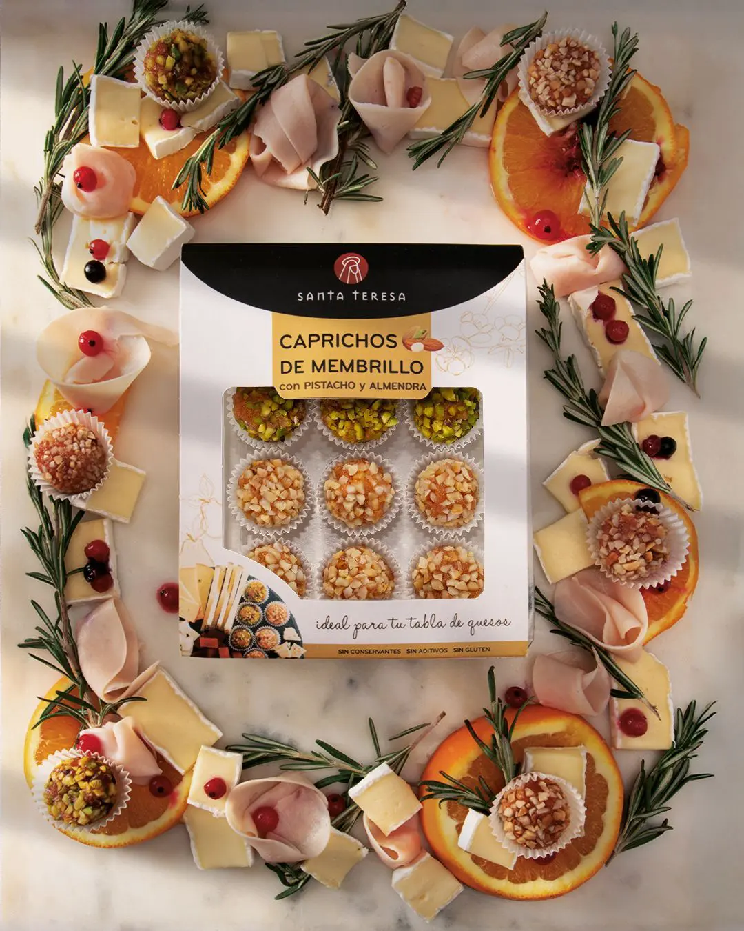 Los Caprichos de Membrillo Santa Teresa son la combinación perfecta para elevar la presentación de tus tablas de queso esta Navidad, aportando un delicado toque de sofisticación y un contraste de sabores único. Su versatilidad lo convierte en el acompañante ideal para una gran variedad de quesos, desde los más suaves hasta los más curados, haciendo de cada celebración un momento gourmet y una auténtica experiencia gastronómica para compartir.