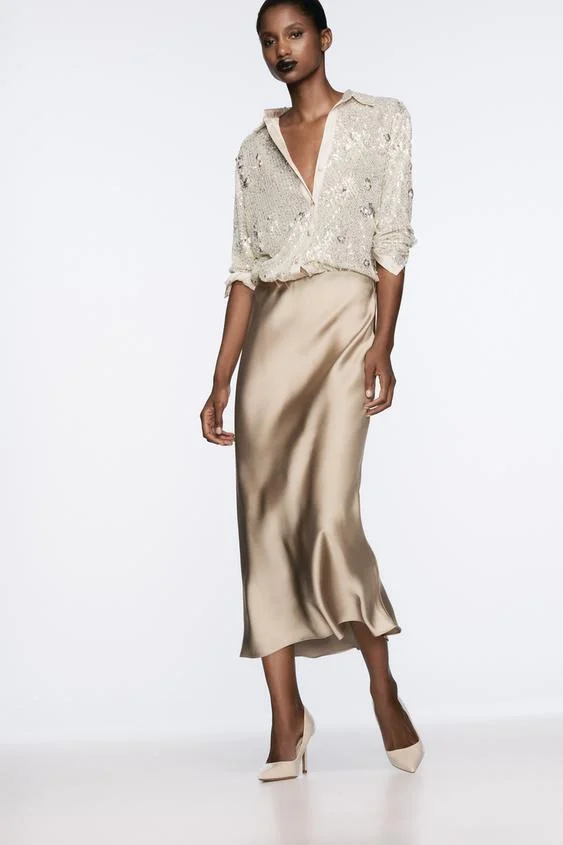 Si bien es cierto que la mayoría de mujeres suele inclinarse por los vestidos (ya sean de lentejuelas o de terciopelo) a la hora de construir sus looks navideños más sofisticados, en realidad hay una gran variedad de prendas pensadas para esta clase de ocasiones y que se caracterizan por ser más versátiles y ponibles. Un ejemplo claro son las faldas, las cuales tiendas como Zara se encargan de acoplar a las necesidades de los eventos navideños, pero de tal forma que acaben siendo útiles también para otras circunstancias. Por ello, si buscas el efecto movimiento que tanto enamora de los vestidos, pero quieres marcar la diferencia con otra prenda, la falda es la opción perfecta para ti.