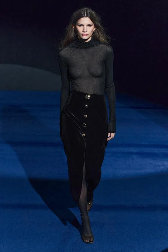 Si bien es cierto que la mayoría de mujeres suele inclinarse por los vestidos (ya sean de lentejuelas o de terciopelo) a la hora de construir sus looks navideños más sofisticados, en realidad hay una gran variedad de prendas pensadas para esta clase de ocasiones y que se caracterizan por ser más versátiles y ponibles. Un ejemplo claro son las faldas, las cuales tiendas como Zara se encargan de acoplar a las necesidades de los eventos navideños, pero de tal forma que acaben siendo útiles también para otras circunstancias. Por ello, si buscas el efecto movimiento que tanto enamora de los vestidos, pero quieres marcar la diferencia con otra prenda, la falda es la opción perfecta para ti.