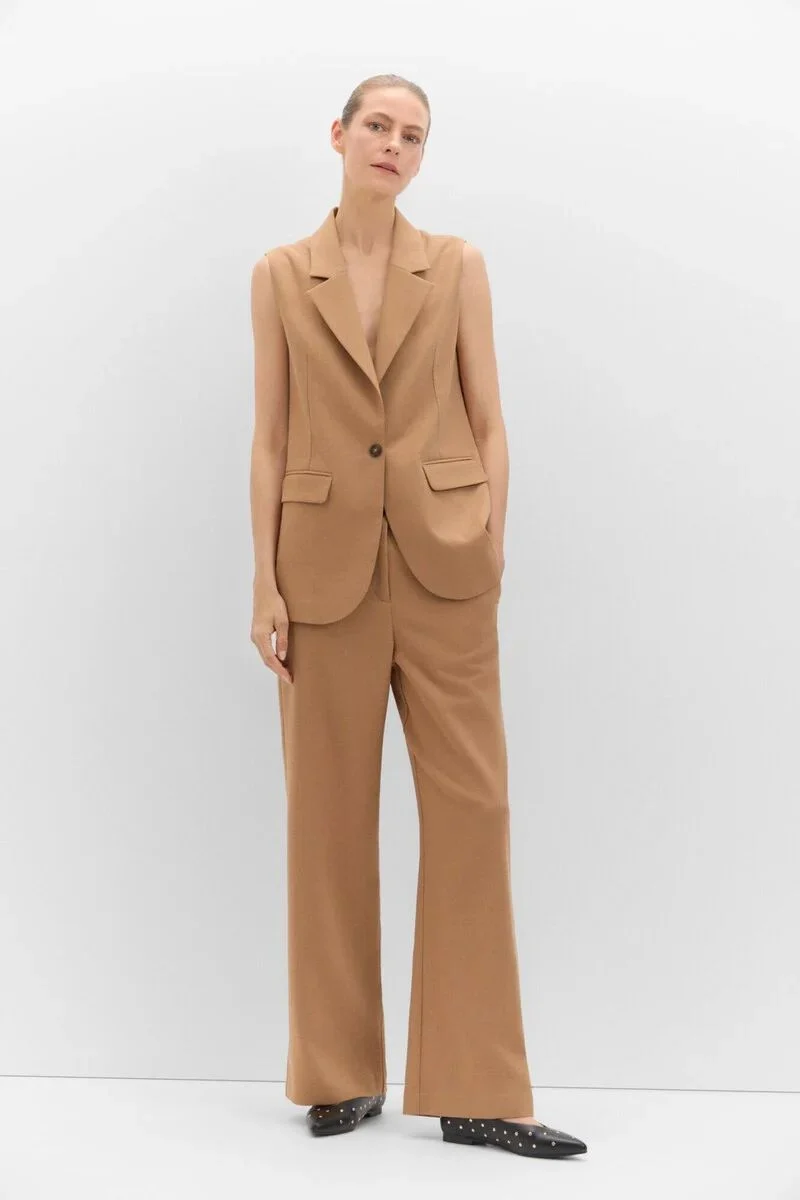Este chaleco cuenta con grandes solapas que aportan un aire contemporáneo, y su cierre mediante un botón lo convierte en una prenda fácil de llevar. Los bolsillos con tapeta ofrecen funcionalidad y un toque adicional de estilo.