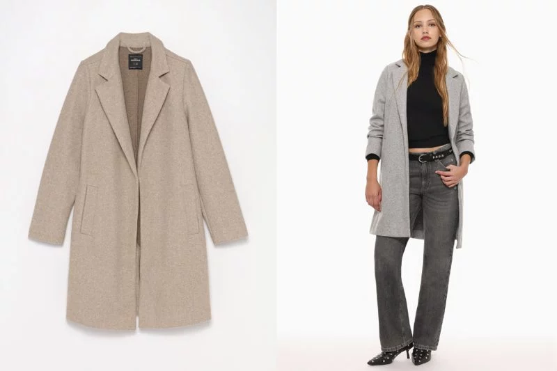 Una de las características más notables del abrigo de paño abierto de Lefties es su diseño contemporáneo y depurado. Con un cuello solapa que aporta un aire de sofisticación, este abrigo se adapta perfectamente tanto a situaciones casuales como a eventos más formales. Las líneas nítidas y la silueta clásica hacen que sea una prenda atemporal, asegurando que no pasará de moda rápidamente. Además, los dos bolsillos funcionales no solo aumentan su utilitarismo, sino que también mejoran su aspecto estético, haciendo que el abrigo sea aún más atractivo.