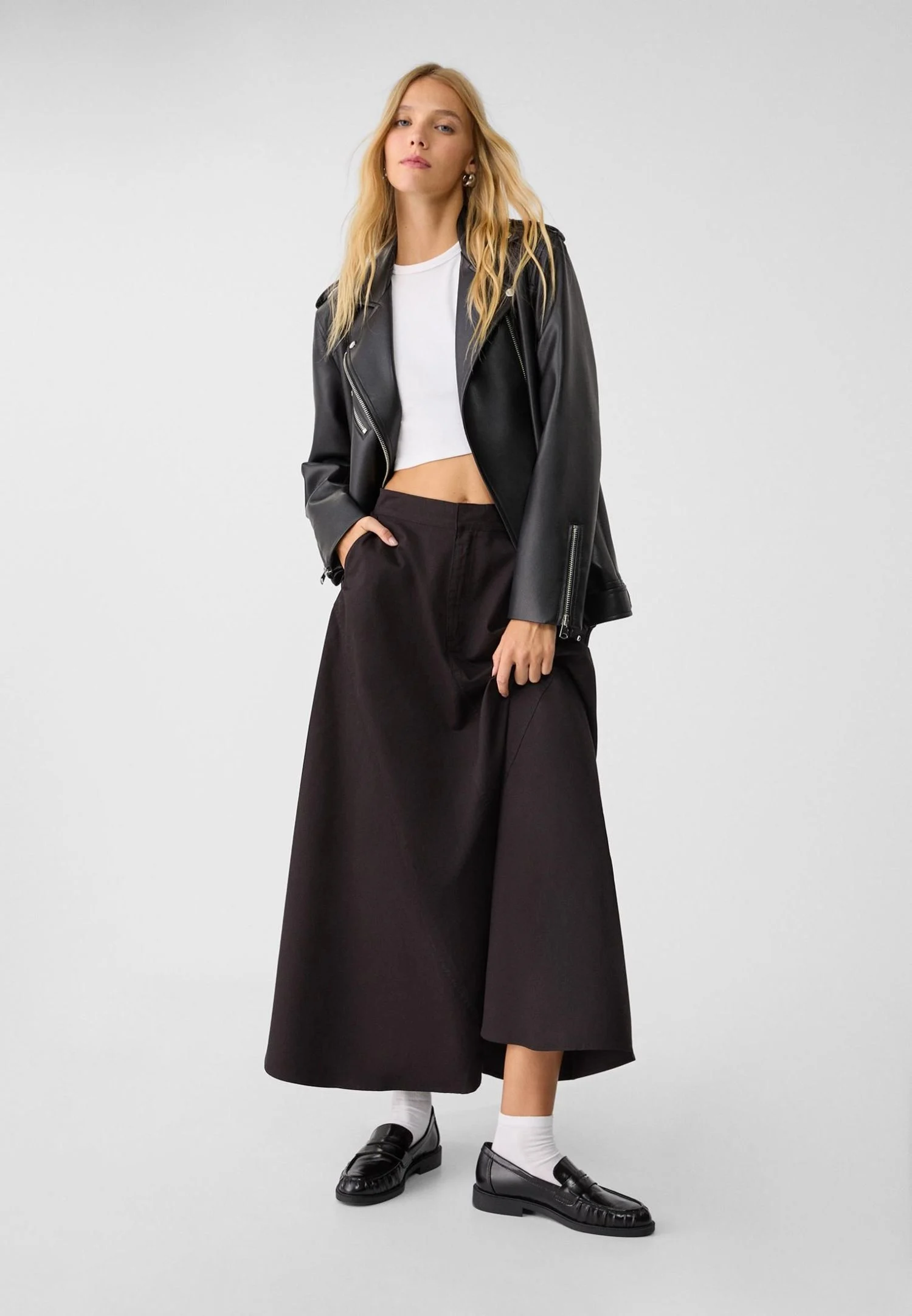 La falda fluida midi capa de Stradivarius es una prenda clave en tu armario si buscas un equilibrio entre elegancia y comodidad. Su diseño atemporal y detalles cuidadosamente pensados la convierten en una prenda versátil que puede ser usada en varias ocasiones, asegurando que siempre luzcas impecable sin esfuerzo.