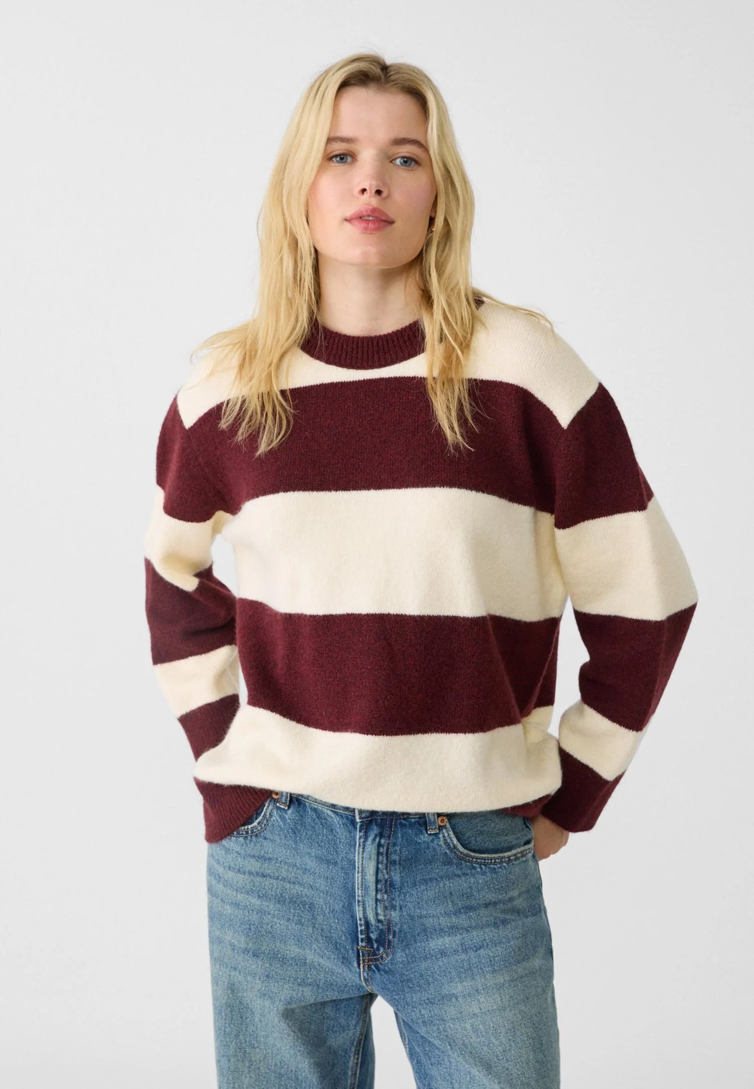 Stradivarius ha vuelto a sorprender con su Jersey de punto con tacto suave , una prenda que promete ser imprescindible este invierno. Disponible en tonos como vainilla, rojo y granate, este jersey se adapta a diferentes estilos y ocasiones. Su diseño clásico, con cuello redondo y mangas largas, se combina con acabados en canalé que le aportan un toque cómodo y moderno.