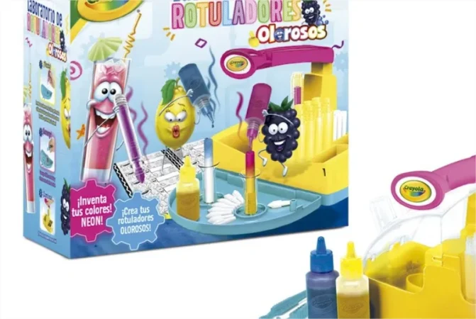 El laboratorio de rotuladores olorosos neón de Crayola es un kit creativo que permite a los niños diseñar y personalizar sus propios rotuladores. Además, sus colores vibrantes y aromas únicos hacen que la experiencia sea aún más divertida.