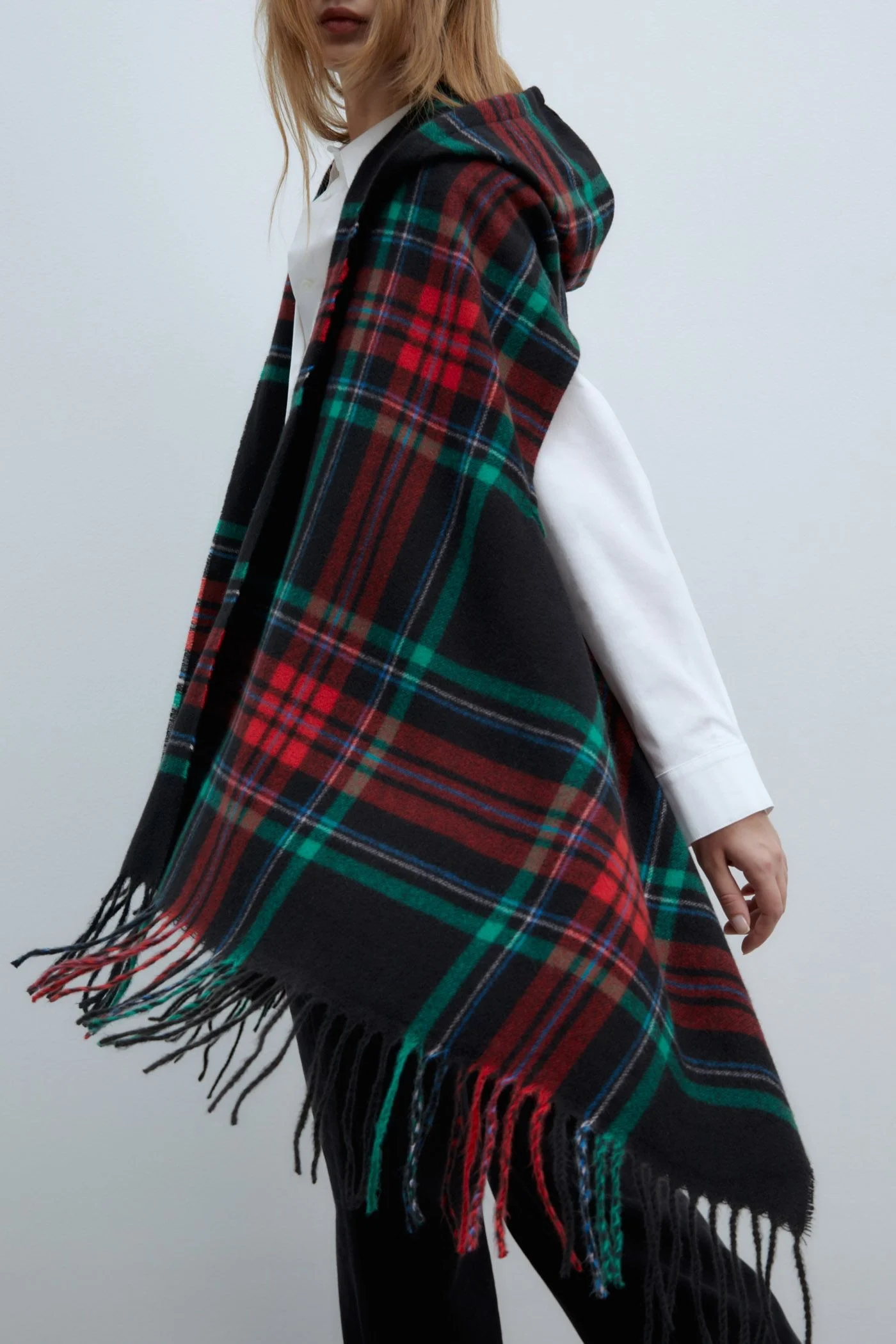 Sfera presenta su accesorio estrella de la temporada: el Multiway con capucha de cuadros y flecos, un complemento que no solo te mantendrá abrigado, sino que también añadirá un toque único a tu look. Con un diseño versátil, puedes llevarlo de varias maneras para adaptarlo a diferentes estilos, haciendo de este accesorio una pieza imprescindible para los días fríos. Su capucha y los detalles en flecos le dan un aire moderno, mientras que el estampado de cuadros le aporta un toque clásico que nunca pasa de moda.