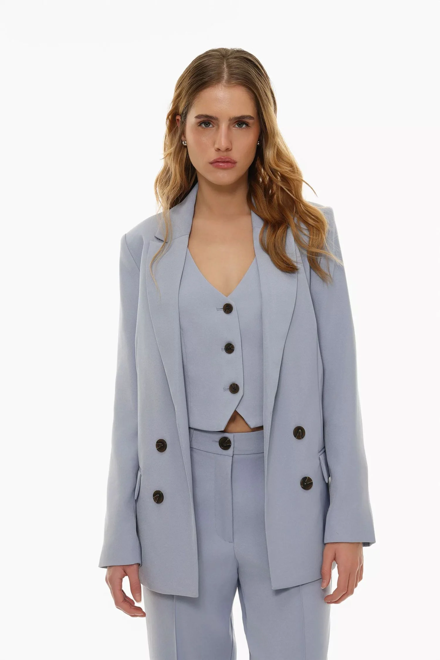 Detalles que elevan el diseño. El detalle de los falsos bolsillos y los botones decorativos a contraste añaden un toque de distinción, haciendo de esta blazer una pieza con personalidad. Además, su versatilidad permite combinarla fácilmente con otros estilos, desde unos jeans hasta un conjunto de pantalón o chaleco a juego, para crear looks coordinados que no pasan desapercibidos.