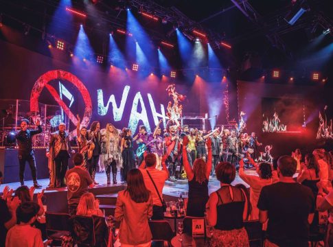 WAH es mucho más que un simple espectáculo; es una fantasía, una experiencia única que combina gastronomía, entretenimiento y fiesta en un entorno espectacular diseñado para sorprenderte desde el primer instante en que se ve su impresionante piano gigante. WAH recibe a todo el mundo con una ambientación que parece sacada de otro planeta. Nada más entrar invitan a formar parte de la rebelión contra Nación Omega (los malos malísimos que quieren prohibir la música) y salvar la música al grito de ¡Todos somos WAH!