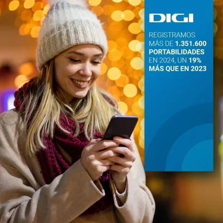 2024 ha sido un gran año para Digi en España. La operadora de origen rumano, que opera en nuestro país desde 2008, ha acumulado más de 1.351.600 portabilidades en 2024, un 19% más que las registradas el año anterior. En el año finalizado la compañía ha renovado su imagen de marca para unificar su identidad corporativa en todos los países en los que opera, (ya ha desembarcado también en Bélgica y en Portugal), inició su negocio 5G, ha puesto en marcha su propio servicio de televisión, ase unió a instituciones como DigitalEs o la CEOE, y ha conseguido rozar los 8 millones de clientes en nuestro país.
