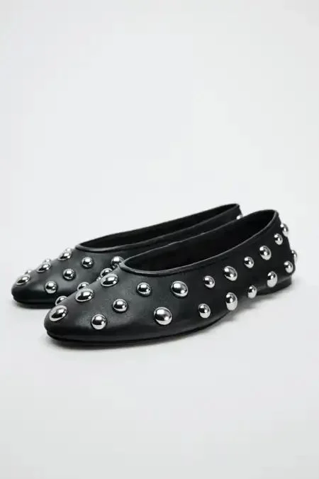 Y para cerrar este listado con broche de oro, tenemos estas bailarinas con un diseño en piel y tachuelas metálicas, las cuales logran combinar a la perfección lo clásico con un toque rockero y sofisticado a la vez. Son ideales para estilismos casuales con jeans y camisas blancas, por ejemplo, o para romper la sobriedad de un vestido negro, si se trata de una ocasión más formal. Cuestan 49,95€ y las puedes comprar ahora mismo en las instalaciones o en el sitio web de Zara (referencia 1541/410/800).
