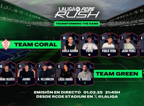 LALIGA y EA SPORTS, “en su compromiso por construir el fútbol del futuro, un deporte más inclusivo, innovador y conectado”, celebrarán este fin de semana una activación inédita: un partido real en Rush durante el descanso del RCD Espanyol–Real Madrid que enfrentará a los ‘influencers’ Juanki Municio, Alejandro Villamizar, Pablo Vera, Juan Pérez, Manu Regato, Paaprii, Lucii_lba y Carla Gabián y a las leyendas de LALIGA Kiko Casilla e Iván Helguera que serán, a su vez, capitanes de los equipos.