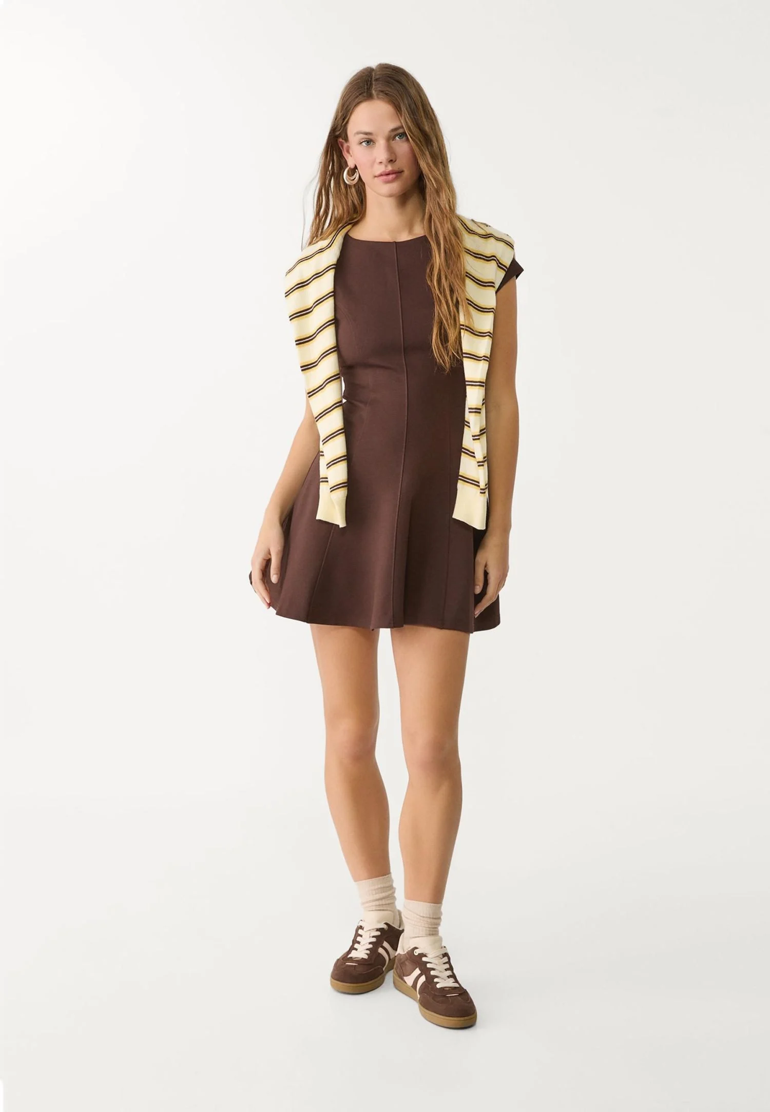 Elegir el outfit perfecto para una cita puede convertirse en un dilema existencial, en un gran dolor de cabeza. ¿Demasiado arreglada? ¿Muy informal? ¿Y si parece que me he esforzado de más… o de menos? Tranquila, porque en esos momentos en los que ni las amigas te pueden echar una mano, Stradivarius es capaz de hacerte la vida más fácil con este vestido que es puro acierto. Tiene el equilibrio perfecto entre elegancia y naturalidad, ese toque de «me veo increíble sin esfuerzo» que todas queremos.