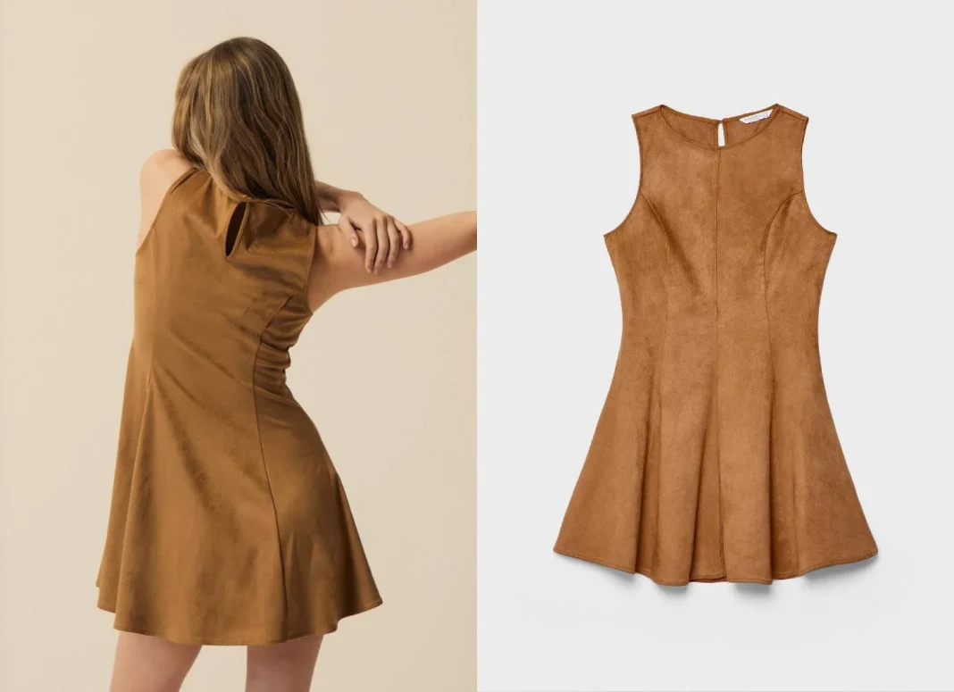 La primavera es una de las temporadas más complicadas para vestir, porque el calor no es tan intenso pero tampoco el frío. Por ello, este vestido de Stradivarius se convirtió en el predilecto por los especialistas, quienes aconsejan correr a la tienda para obtener este modelo. Se trata del «vestido corto efecto ante», que viene en una de las tonalidades más populares de los últimos meses. El color marrón en su tonalidad más clara se convirtió en el verdadero furor y el de esta prenda es muy similar al conocido como el «mocha mousse».