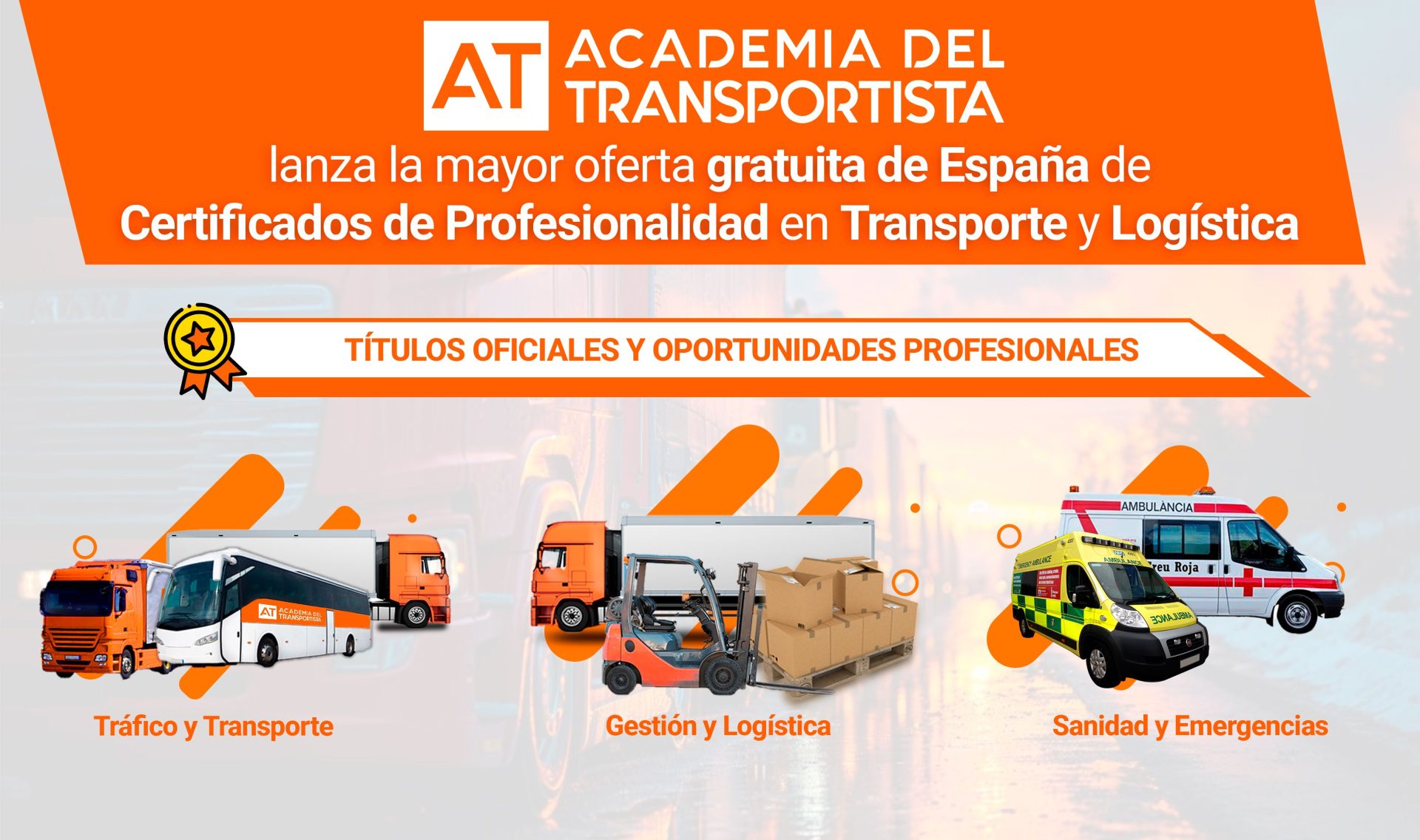 Quienes buscan una formación oficial, gratuita y de alta calidad en Transporte y Logística tienen una gran oportunidad. AT Academia del Transportista ofrece los mejores programas para impulsar el futuro profesional en un sector en constante crecimiento y con alta demanda de profesionales cualificados.