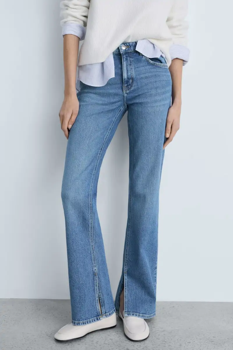 Pero los vaqueros flare de tiro medio también son una opción ideal para quienes buscan un look cómodo y favorecedor. Su diseño ajustado hasta la rodilla y su bajo más abierto crean un equilibrio perfecto, estilizando la figura sin sacrificar la comodidad.