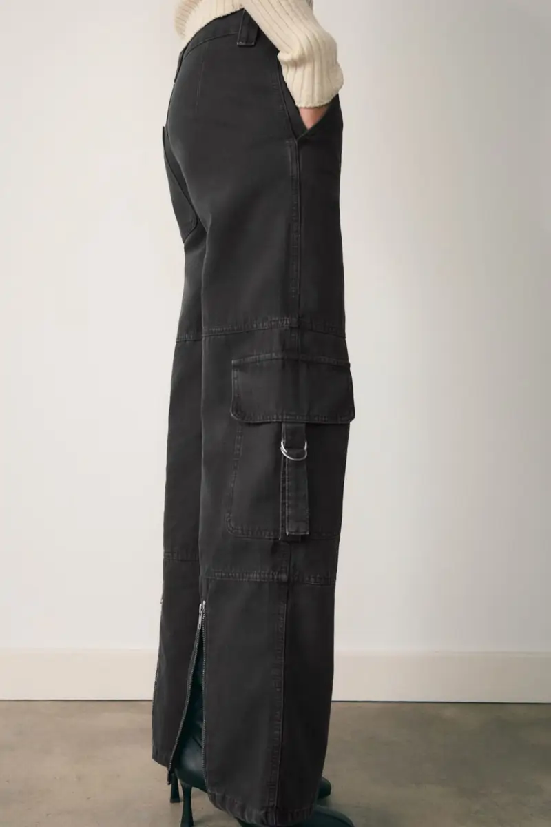 Los vaqueros cargo, con sus bolsillos de parche y su cremallera trasera, son otra muestra de cómo Mango apuesta por la innovación. Este diseño no solo es funcional, sino que también añade un toque de originalidad a cualquier outfit. Perfectos para looks diarios o para eventos más informales, son una opción que no puede faltar en tu armario.