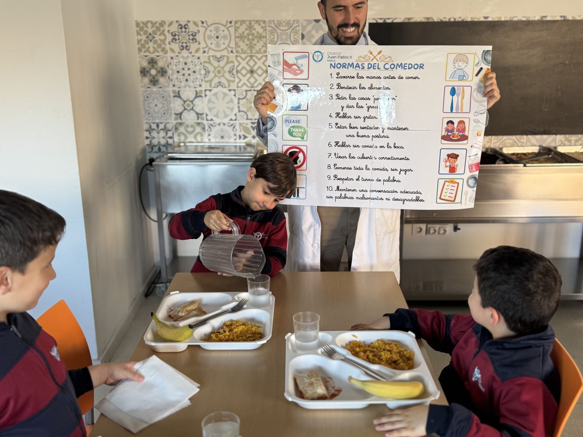 El colegio Juan Pablo II de Parla ha puesto en marcha el Comedor Tutorizado, un proyecto educativo que transforma la hora de la comida en una oportunidad para enseñar buenos modales, reforzar hábitos saludables y fortalecer la relación entre tutores y alumnos.