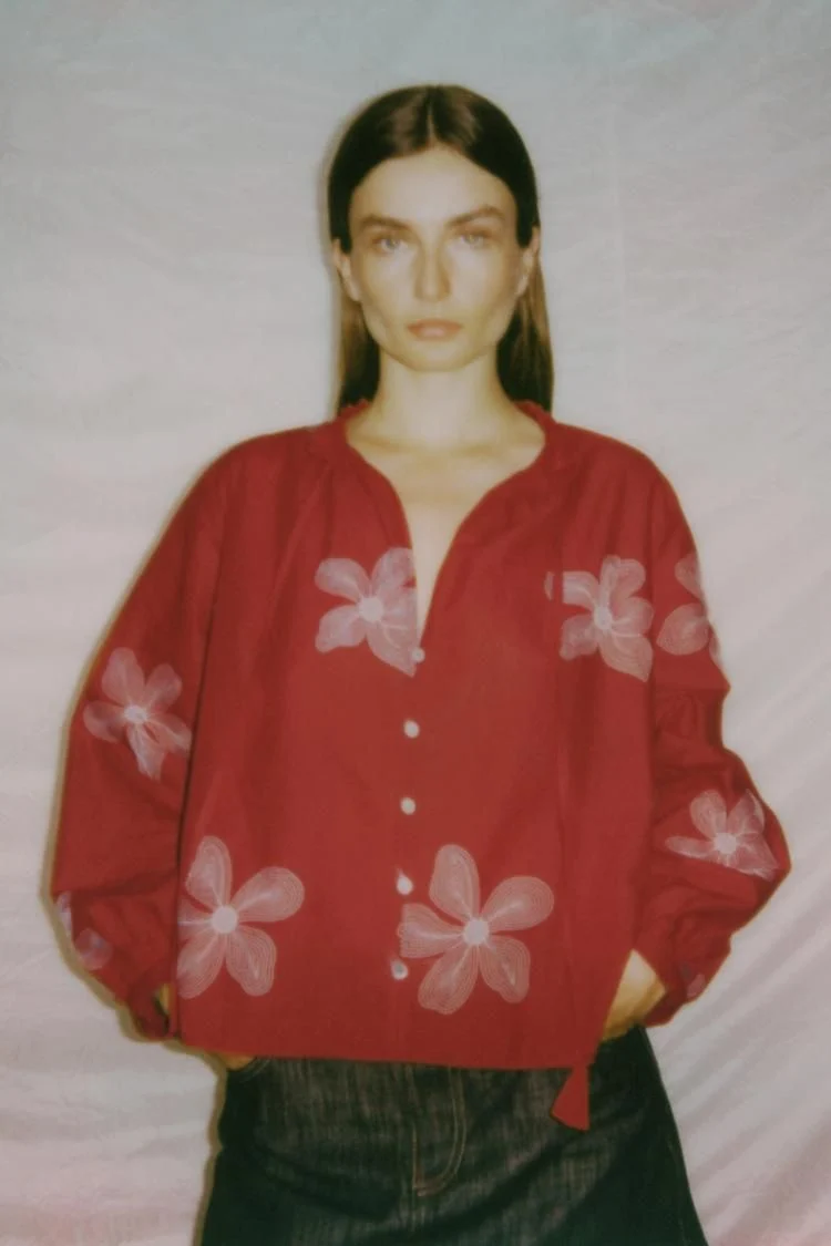Esta blusa bordada con flores por 29,95€ en frambuesa es de esas que te pones y dices “hola, primavera, aquí estoy yo para petarlo”. Con cuello redondo, volantito y un cordón que le da un aire romántico, tiene escote pico, mangas largas y unos bordados florales en contraste que te hacen suspirar de lo bonitos que son. Por ese precio, te llevas una blusa que te saca del rollo básico y te mete en un lookazo sin sudar la gota gorda.