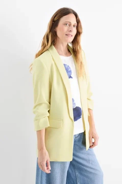 Lo que me tiene loca de esta joyita es cómo te lo hace todo fácil por menos de 40 pavos. El forro ligero dice “tranqui, no te aso”, y los colores como el amarillo claro o el naranja oscuro gritan “mírame, que soy el alma de la oficina”. Por 39,99€, esta americana es un chollo que pega con vaqueros para un día tranquilo o con unos pantalones chics para petarlo en una reunión.
