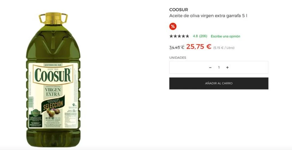 Una garrafa de 5 litros de Coosur era de 34.45 euros, pero ahora sólo es de 25.75 euros. Esto indica una reducción de costes de 8.70 euros. Es una de esas promociones que no se debe dejar pasar por alto si disfrutas de experiencias culinarias de calidad, así como un compromiso con el bienestar de tu organismo.