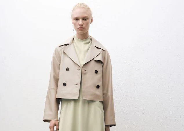 10Cuero Gabardina Design Crop y Double Bottle – 249.99 €, exclusivo de Mango