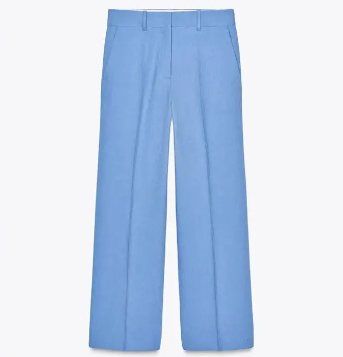 Zara usó tela de lino para un pantalón de longitud media para que sea adecuado para el clima cálido Es una forma elegante de alegrar la decoración sin sacrificar la formalidad. Este pantalón es perfecto para una tarde de primavera, y es aún más agradable cuando coincide con zapatos cómodos Disponible por 59.95 euros