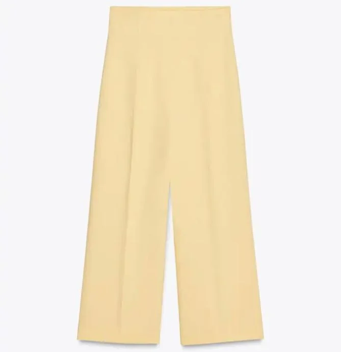 Culotte Pants sigue siendo imprescindible en el armario de primavera. Este diseño de Zara, en un estilo elegante y suave, es ideal para coordinar con calzado blanquecino. El color blanco y el corte que se detiene cerca de tus pies te hará parecer agradable y limpio. Por 29.95 euros.