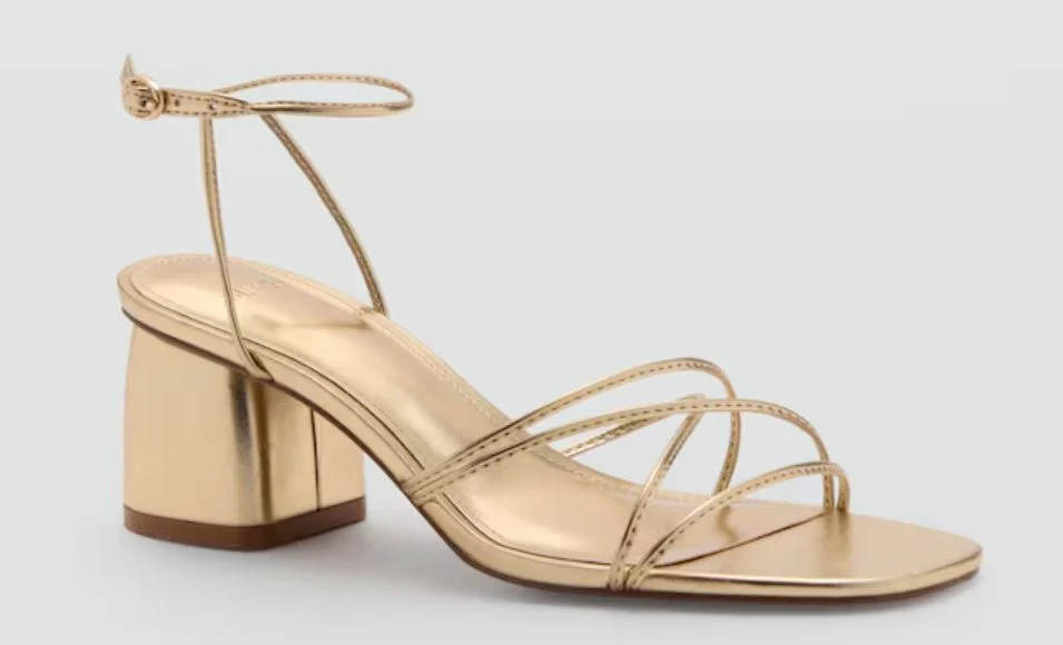 Adorna con sandalias doradas para elevar instantáneamente tu estilo, asegurando una sensación de glamour sin esfuerzo. Mango desarrolló un modelo con delicados paneles que aseguran un ajuste sin costuras, junto con su suela lógica que garantiza una facilidad ambulatoria segura en las reuniones